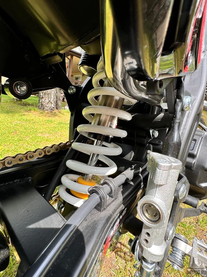 В его сердце — проверенный 4-тактный бензиновый двигатель 177FMN объёмом 300 см³, мощностью 25 л.с., который вкупе с карбюратором PZ30 и 5-ступенчатой механической трансмиссией даёт отличную тягу и уверенную управляемость на любых скоростях. Усиленная рама K16 из хромомолибденового сплава гарантирует жёсткость конструкции и долговечность, а воздушное охлаждение помогает поддерживать оптимальный температурный режим даже при активной езде.